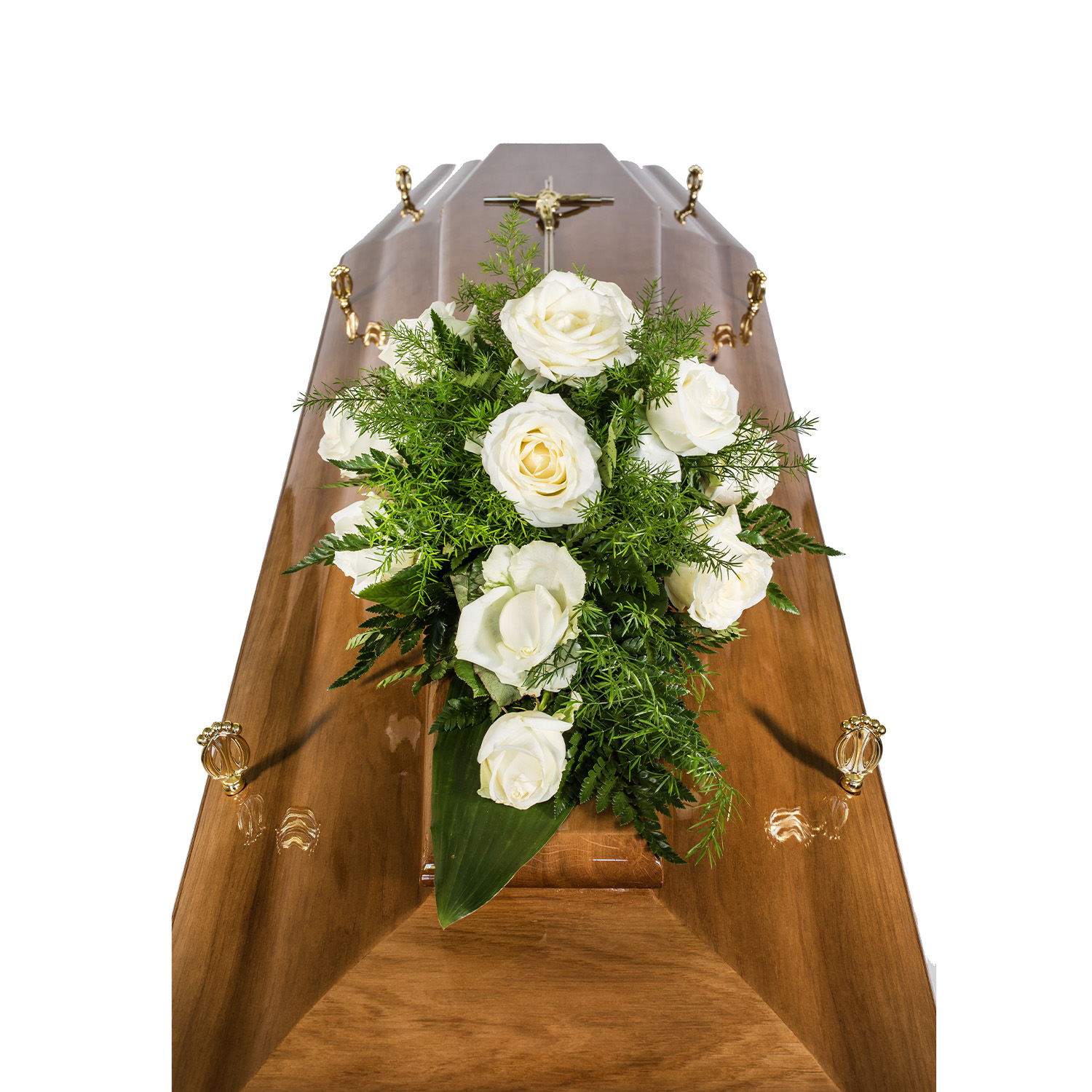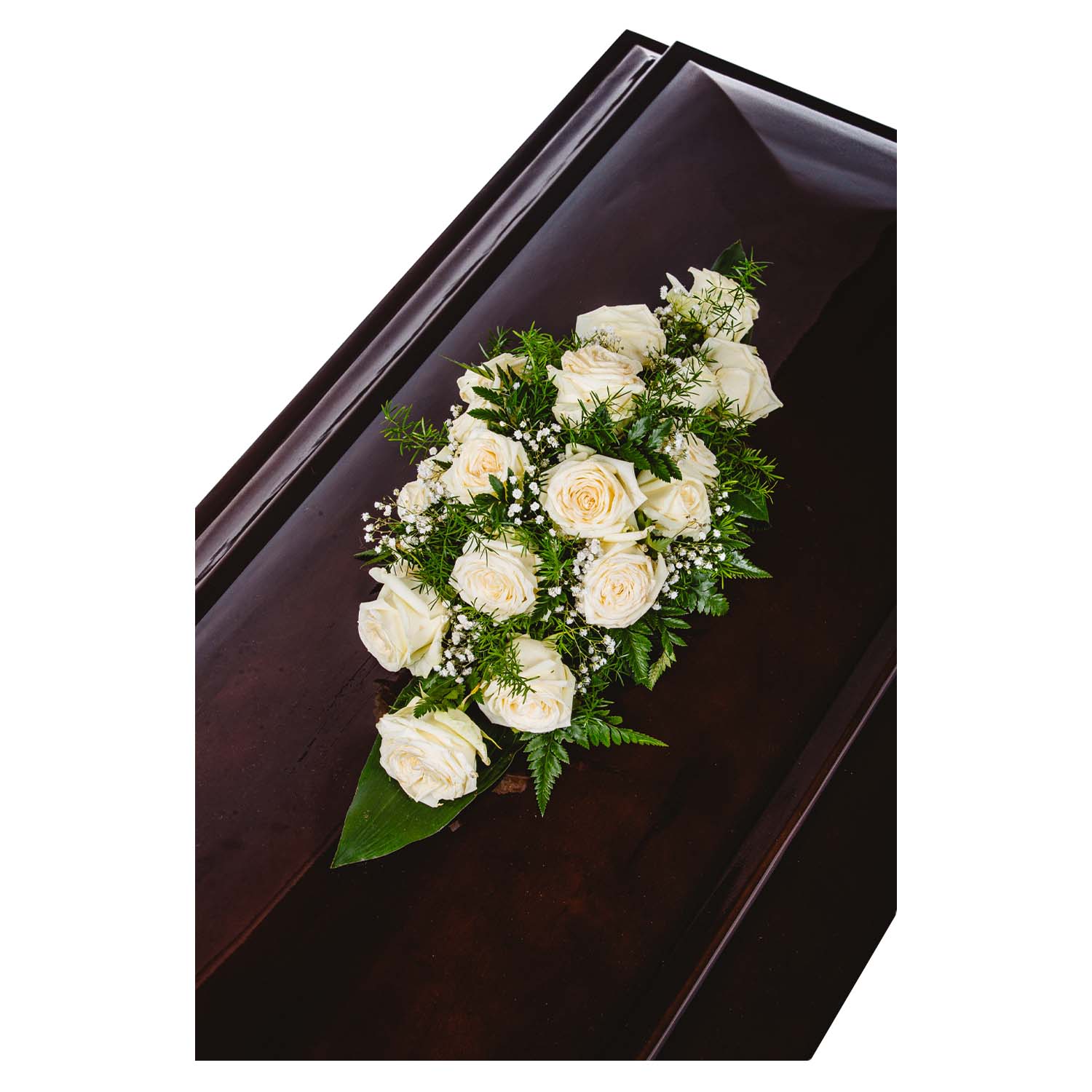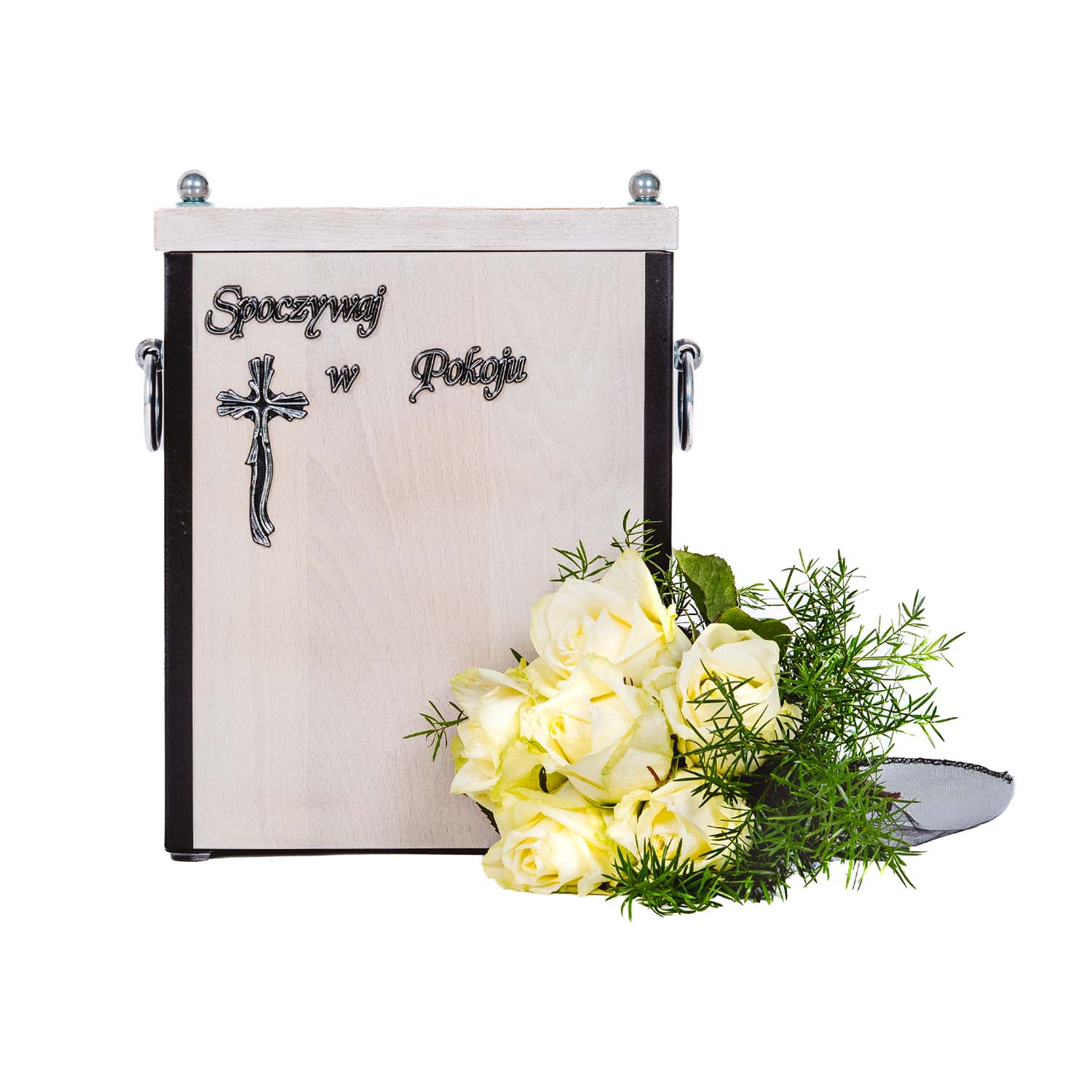 Świece białe + Liście + Wstążka czarna + Róża czerwona